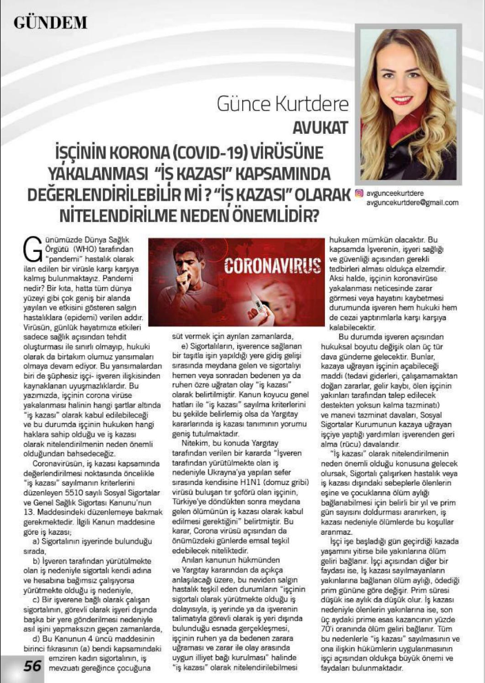 İŞÇİNİN KORONA (COVID-19) VİRÜSÜNE YAKALANMASI “İŞ KAZASI” KAPSAMINDA DEĞERLENDİRİLEBİLİR Mİ ? “İŞ KAZASI” OLARAK NİTELENDİRİLME NEDEN ÖNEMLİDİR?